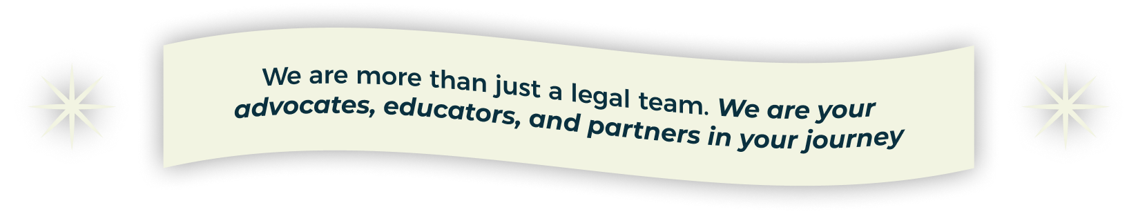 Our clients benefit from the collective support of a compassionate and experienced legal team. We are proud to be the first firm that many of our clients say has truly made them feel valued and seen—not just like another case number.